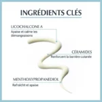 Formule INCI : Aqua, Glycerin, Caprylic Capric Triglyceride, Dimethicone, Pentaerythrityl Tetraisostearate Triisostearin, Vitis Vinifera Seed Oil, Oenothera Biennis Oil, Cetyl Alcohol, Glyceryl Stearate, PEG-40 Stearate, Glycyrrhiza Inflata Root Extract, Ceramide NP, Decylene Glycol, Menthoxypropanediol Citric Acid, Sodium Citrate, Tocopherol, Ascorbyl Palmitate, Trisodium EDTA, BHT, 1-2-Hexanediol, Phenoxyethanol.