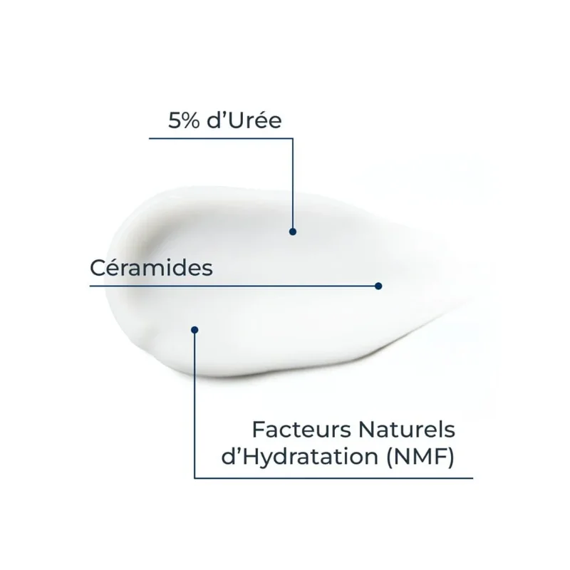 Formule INCI : Aqua, Glycerin, Urea, Dibutyl Adipate, Glyceryl Stearate, Stearyl Alcohol, Dicaprylyl Ether, Cetearyl Alcohol, Sodium Lactate, Tapioca Starch, Glyceryl, Stearate SE, Ceramide NP, Lactic Acid, Arginine HCL, Sodium PCA, Cholesterol, Helianthus Annuus Seed Oil, Alanine, Carnitine, Glycine, Sodium Chloride, Dimethicone, Xanthan Gum, Sodium Cetearyl Sulfate, Decylene Glycol, Phenoxyethanol, Pentylene Glycol.