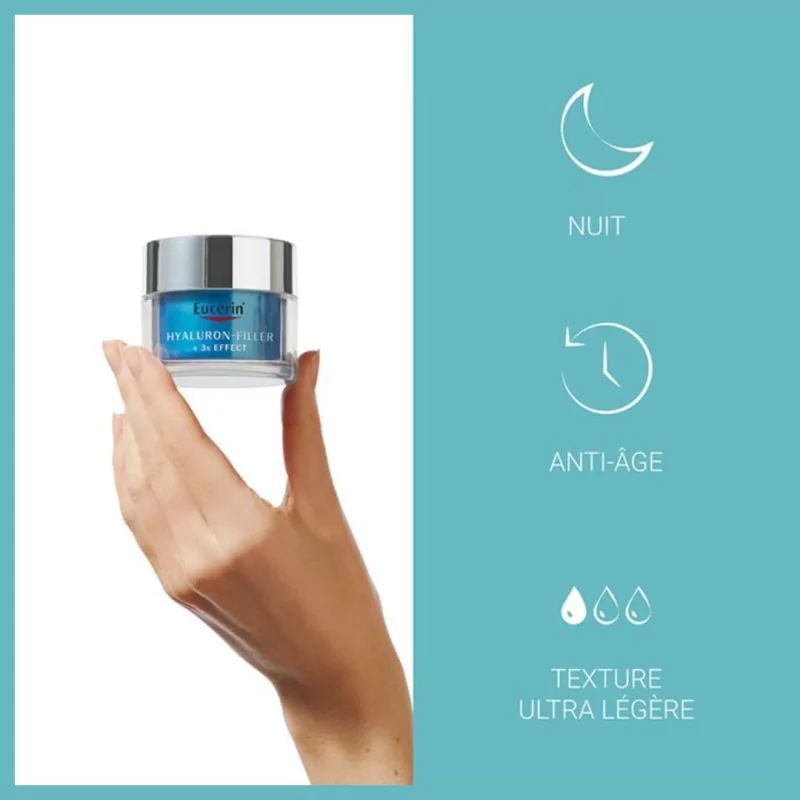 EUCERIN Hyaluron-Filler + 3x Effect, Soin de Nuit, Booster d'Hydratation 50ml.