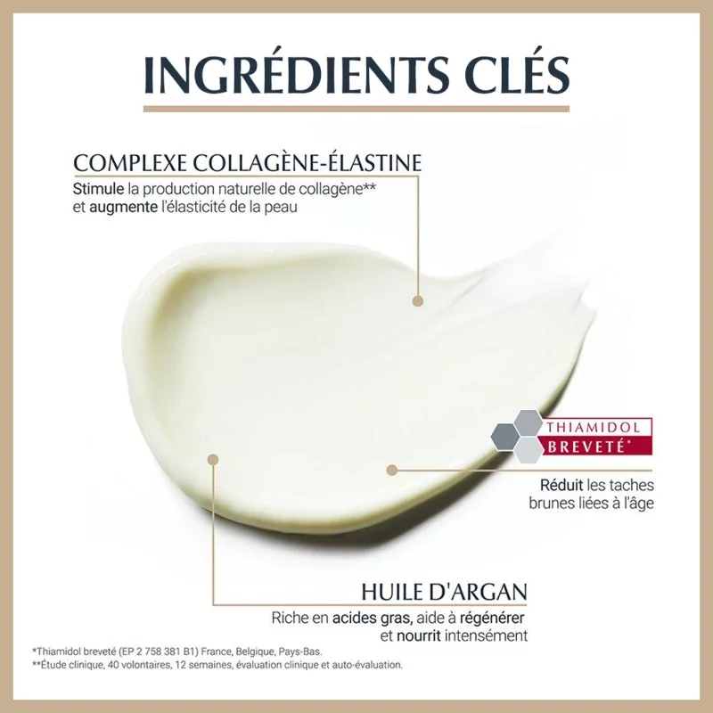 *Thiamidol breveté (EP 2 758 381 B1) France, Belgique, Pays-Bas. **Tests in vitro.***Étude clinique, 32 volontaires, 12 semaines, évaluation clinique et auto-évaluation.