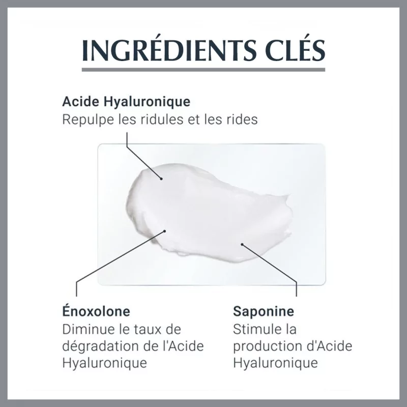 Le Soin de Jour Peau sèche SPF 15 HYALURON-FILLER + 3x EFFECT aide à ralentir la baisse de production naturelle d'Acide Hyaluronique de la peau.