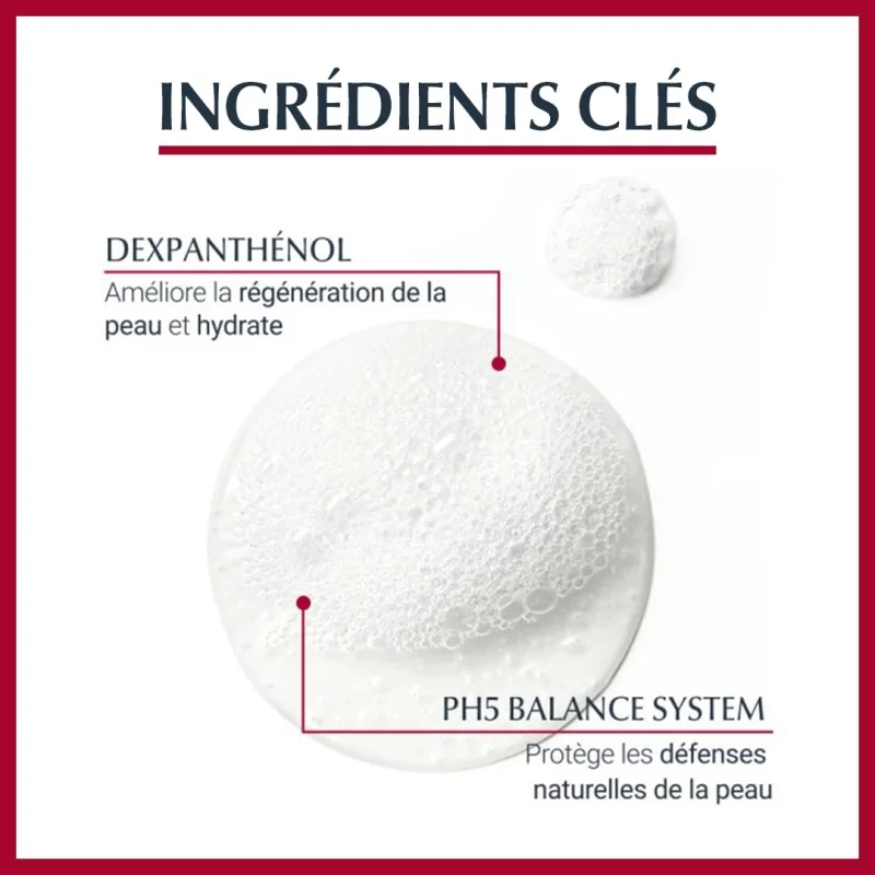 Appliquer le produit en massant. Il va former une mousse pour nettoyer la peau.Peut être utilisé dans la douche ou le bain aussi souvent que nécessaire.Pour de meilleurs résultats, utiliser en combinaison avec un soin hydratant de la gamme Eucerin pH5