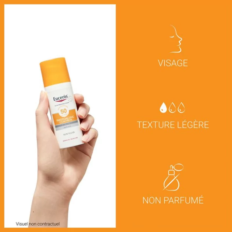 EUCERIN Sun protection. Photoaging control. Sun Fluid. Aide à prévenir du photovieillissement. Réduit visiblement les rides SPF 50 – 50ml.