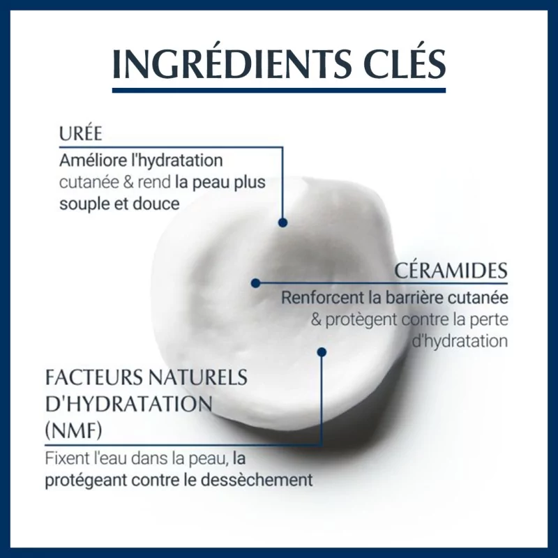 Formule INCI : Aqua, Urea, Glycerin, Decyl Oleate, Isobutane, Panthenol, Alcohol Denat., Stearyl Alcohol, Tapioca Starch, Glyceryl Stearate SE, Propane, Helianthus Annuus Seed Oil, Ceramide NP, Ethylhexyl Cocoate, Glycine, Butane, Arginine HCL, Sodium PCA, Decylene Glycol, Sodium Lactate, Sodium Citrate, Sodium Cetearyl Sulfate, Phenoxyethanol, Methyl Benzoate, Citric Acid, Carnitine, Sodium Chloride, Cholesterol, Alanine, Lactic Acid, Pantolactone, Tocopherol, Parfum.